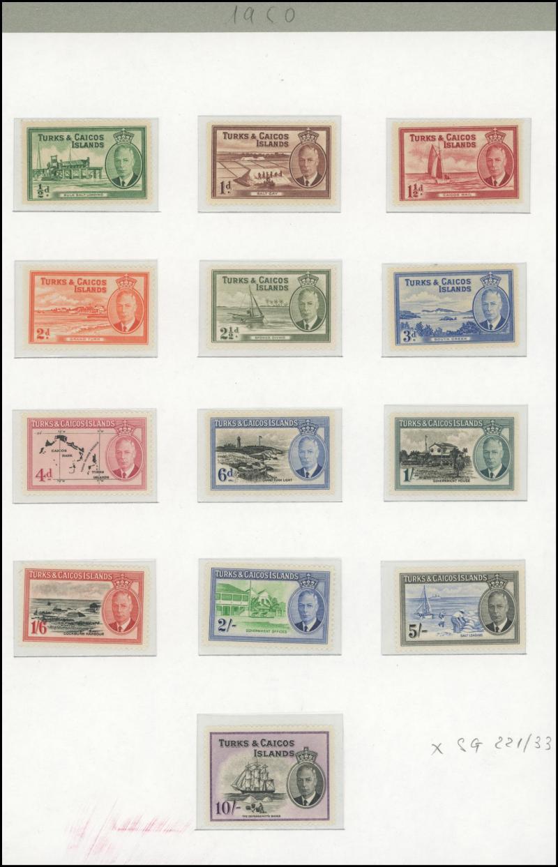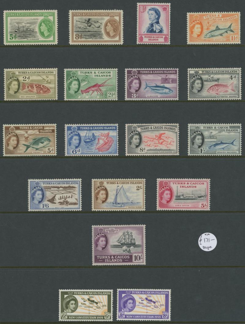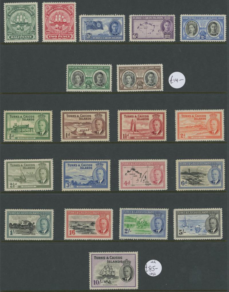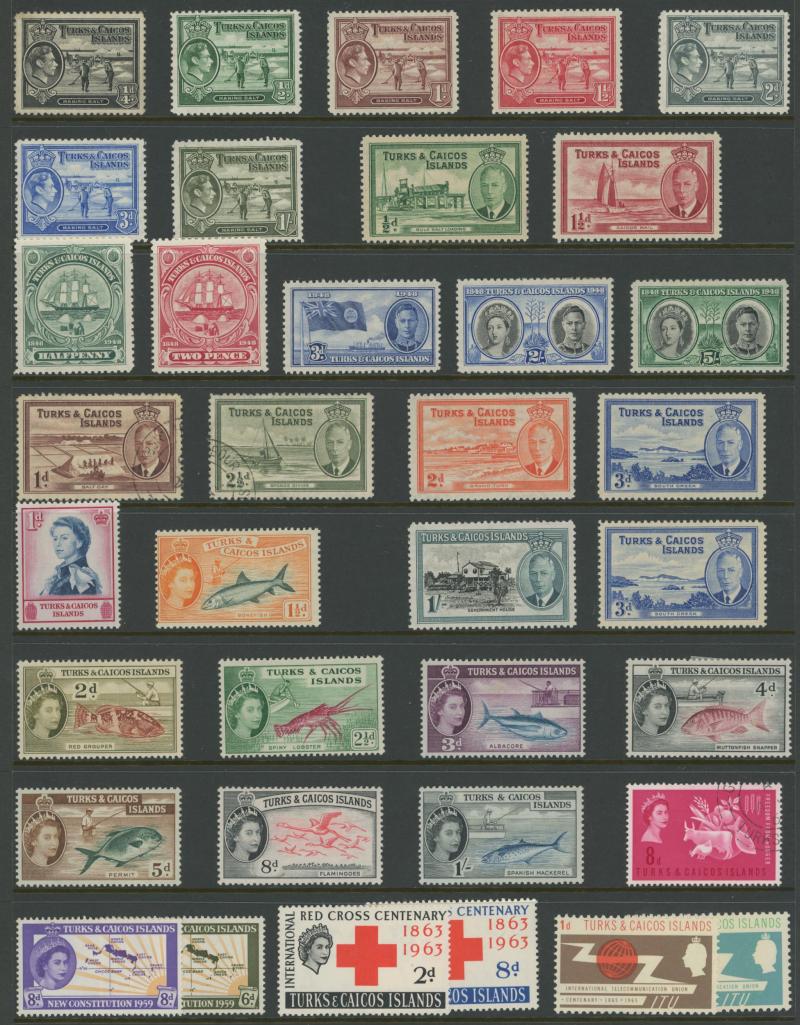 (Certificate) & unused, '2½' on 1/- SG 29 * and SG 36 * (small thin; Certificate), and '4' on 6d unused, 1881 Crown CC Wmk Sideways 1d brown-red *; Turks & Caicos Islands 1900-08 Badge set *, 1909-11 KEVII set * plus used range including 2/- & 3/-,