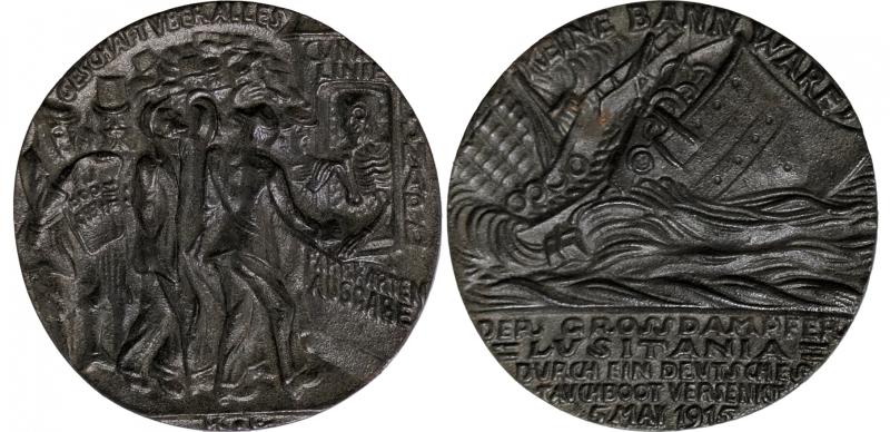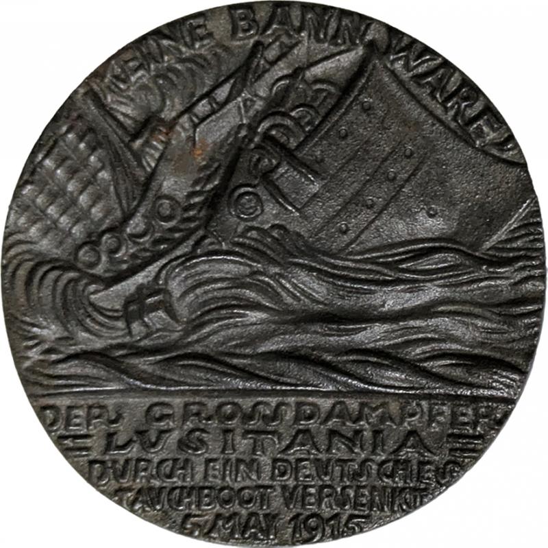 GREAT BRITAIN: 1915 (circa) RMS Lusitania replica (55mm, iron) of German satirical medallion by Karl Goetz, obv. Lusitania sinking