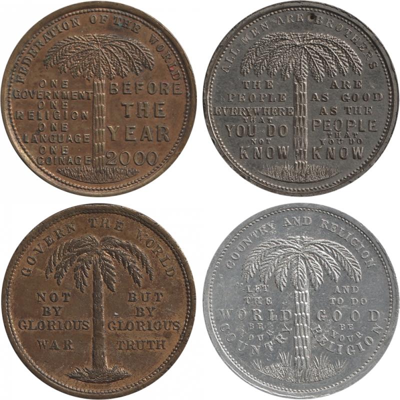 Throughout The World' D25 (R6), C19; 'The Worlds Language' D31 (R6), C23; 'The Whole World Is The Fatherland' D43 (R6), C34; 'Let the World be Your Country' D44 (R5), C32; condition variable, some holed.