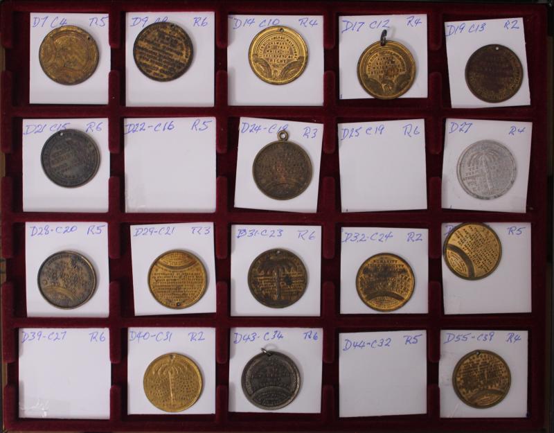 AUSTRALIA: E W Cole (Cole Book Arcade) business tokens collection circa 1879-1903 with various maxims or proverbs in Lighthouse