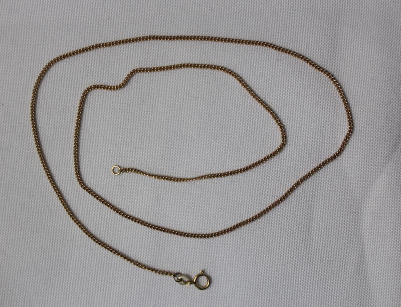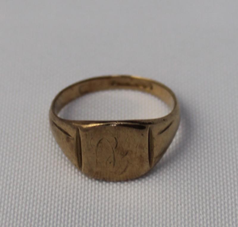 Gold 9ct signet ring (4.98g) size R, engraved; and thin cable necklace (510mm 3.96g); total agw 3.36g. (2) (Image1) (Image2)
