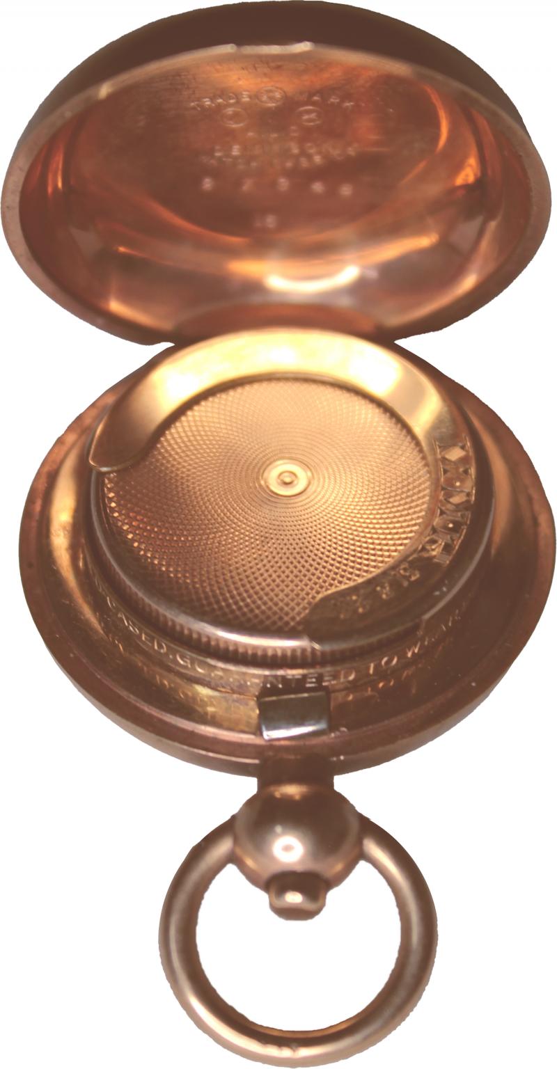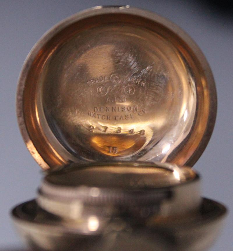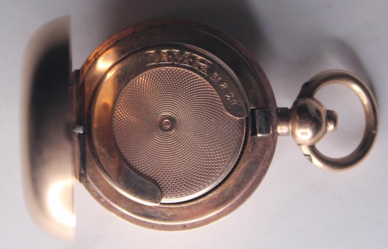 Gold soveriegn case 9ct by Dennison Watch Case Co, engraved inside 'MMR 31.8.20', 'MADE IN ENGLAND GOLD CASED GUARANTEED TO LAST 20