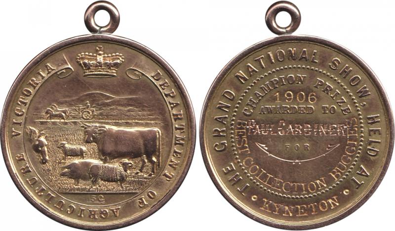 1906 Kyneton Grand National Show Department of Agriculture Victoria 31mm gold (14.6g 15ct) Champion Prize medal, awarded to 'PAUL