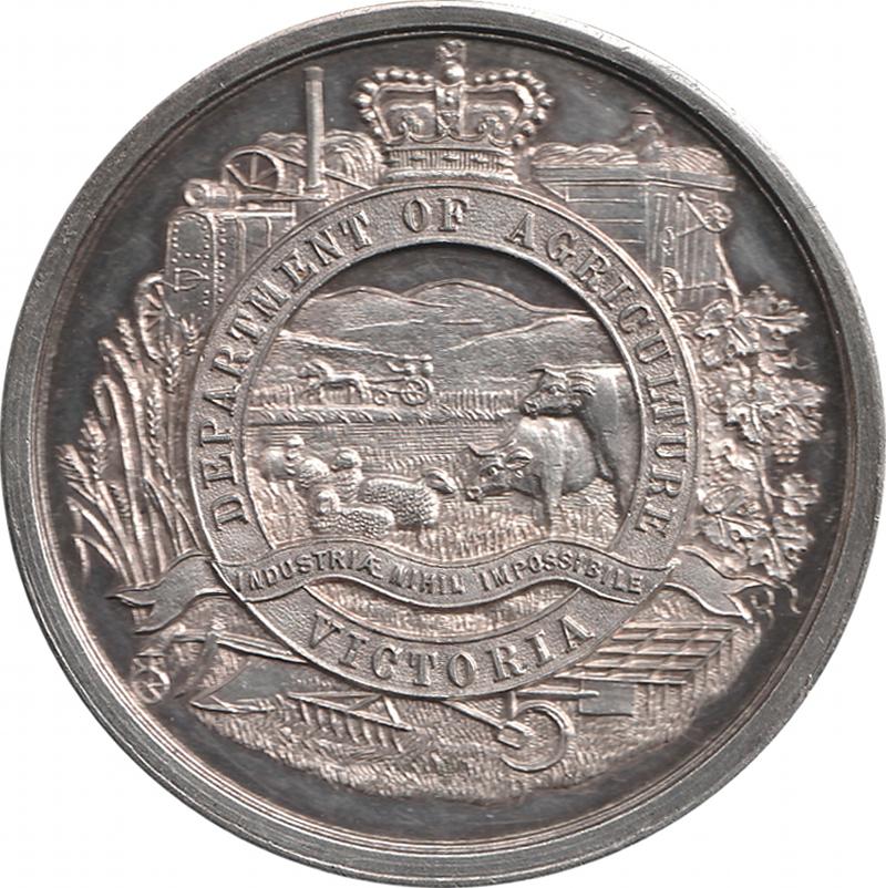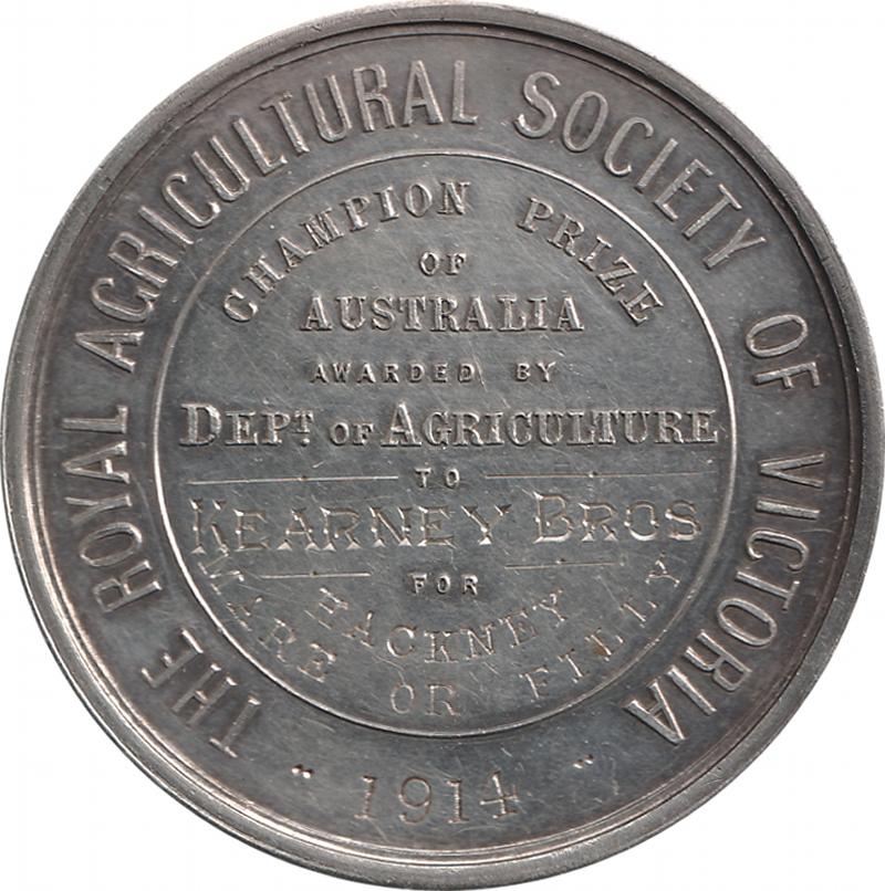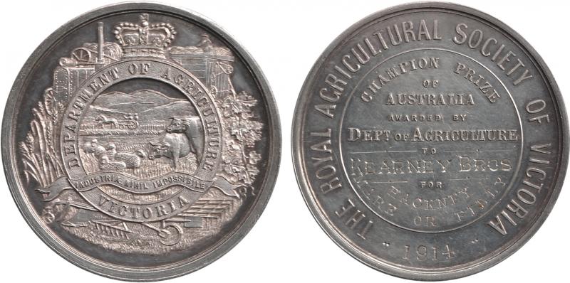 1914 The Royal Agriculture Society Of Victoria 47mm silver Department of Agriculture Champion Prize of Australia medal, awarded to