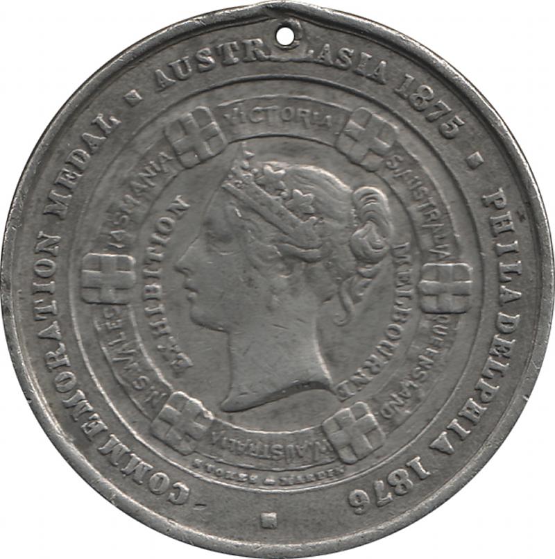 AUSTRALIA: 1875 Victorian Intercolonial Medal for Philadelphia Centennial Exhibition (38mm white metal), C 1876/1, by Stokes &