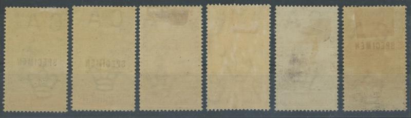 overprints SG 122s-124s, also 1904-09 Multiple Crown CA Watermark 5/- purple & mauve x3 distinct shade combinations plus another with 'SPECIMEN' overprint and £1 green & carmine, lightly mounted or with small hinge remainders, Cat £650+. Ex Jerry