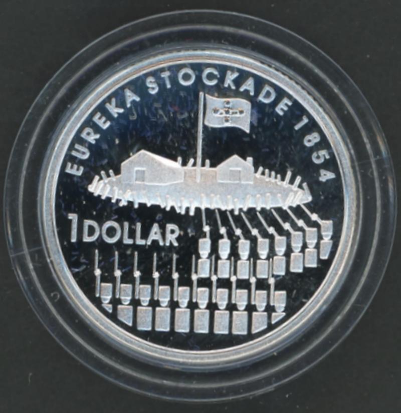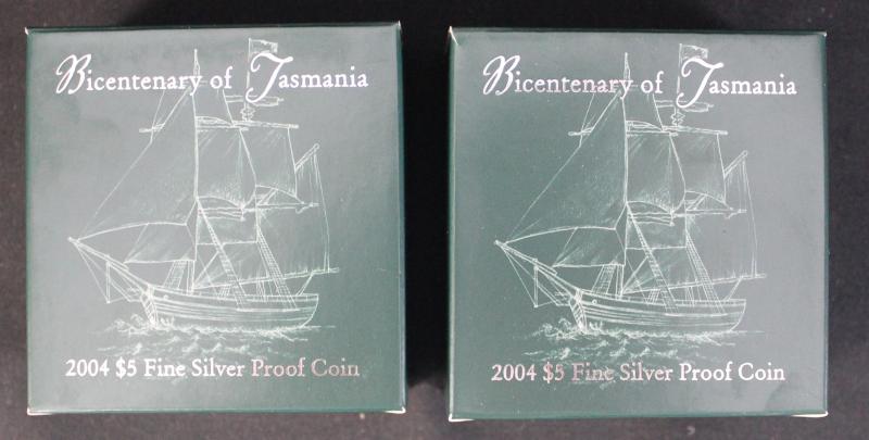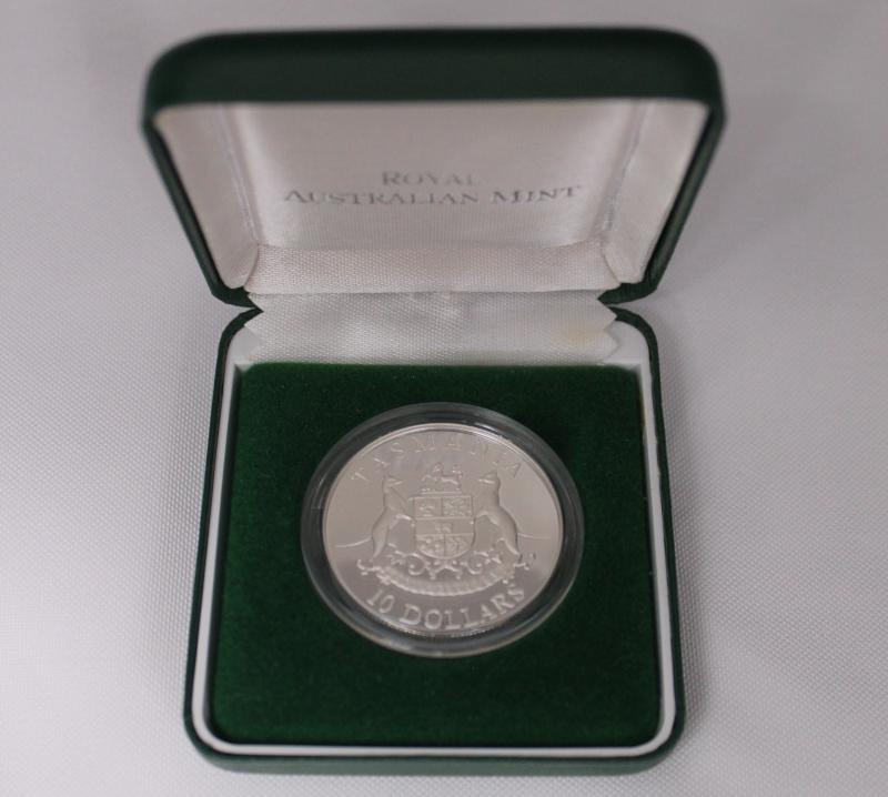 with damaged packaging), 2003 Korean War, 2004 Eureka Stockade; plus $10 (20g, 0.925) 1982 Commonwealth Games Unc & Proof, 1991 TAS; and 1988 $1+25c (1oz+¼oz) Holey Dollar & Dump.
