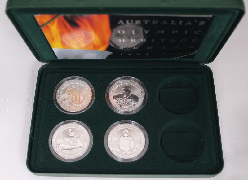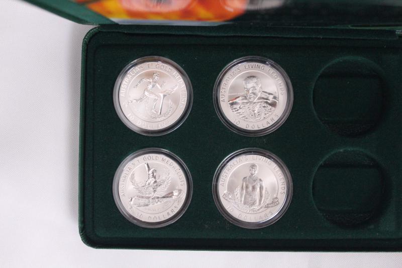 $10 group comprising (20g 0.925) 1991 'Tasmania' cased Proofs x4, Uncirculated x4; plus (20.77g 0.999) 1994-95 Olympic Heritage