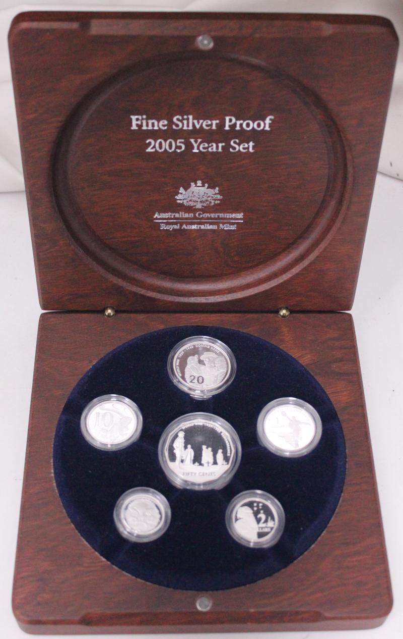 plus 2005 Fine Silver Proof Year Set; total asw 0.546kg, packaging a little aged.