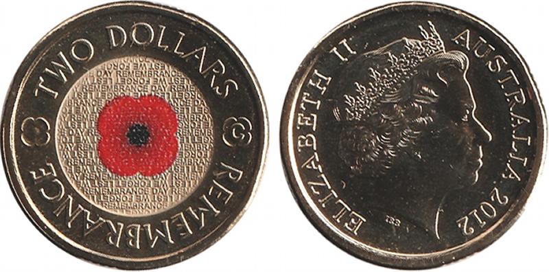 2012 $2 Remembrance Day 'C' mintmark 'Red Poppy' in RAM Uncirculated folder, mintage 40,902, McNiece Cat $650. (Image1) (Image2)