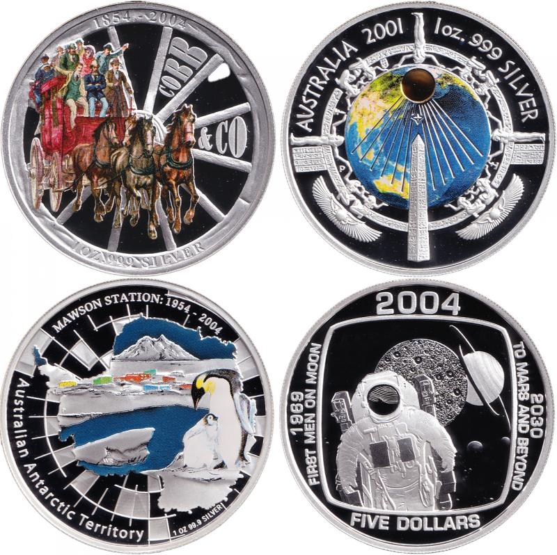 Silver (0.999) group comprising $1/1oz 1997 Parliament, 1998 Parliament, 2001 Millenium (no outer), 2004 35th Anniversary of Moon