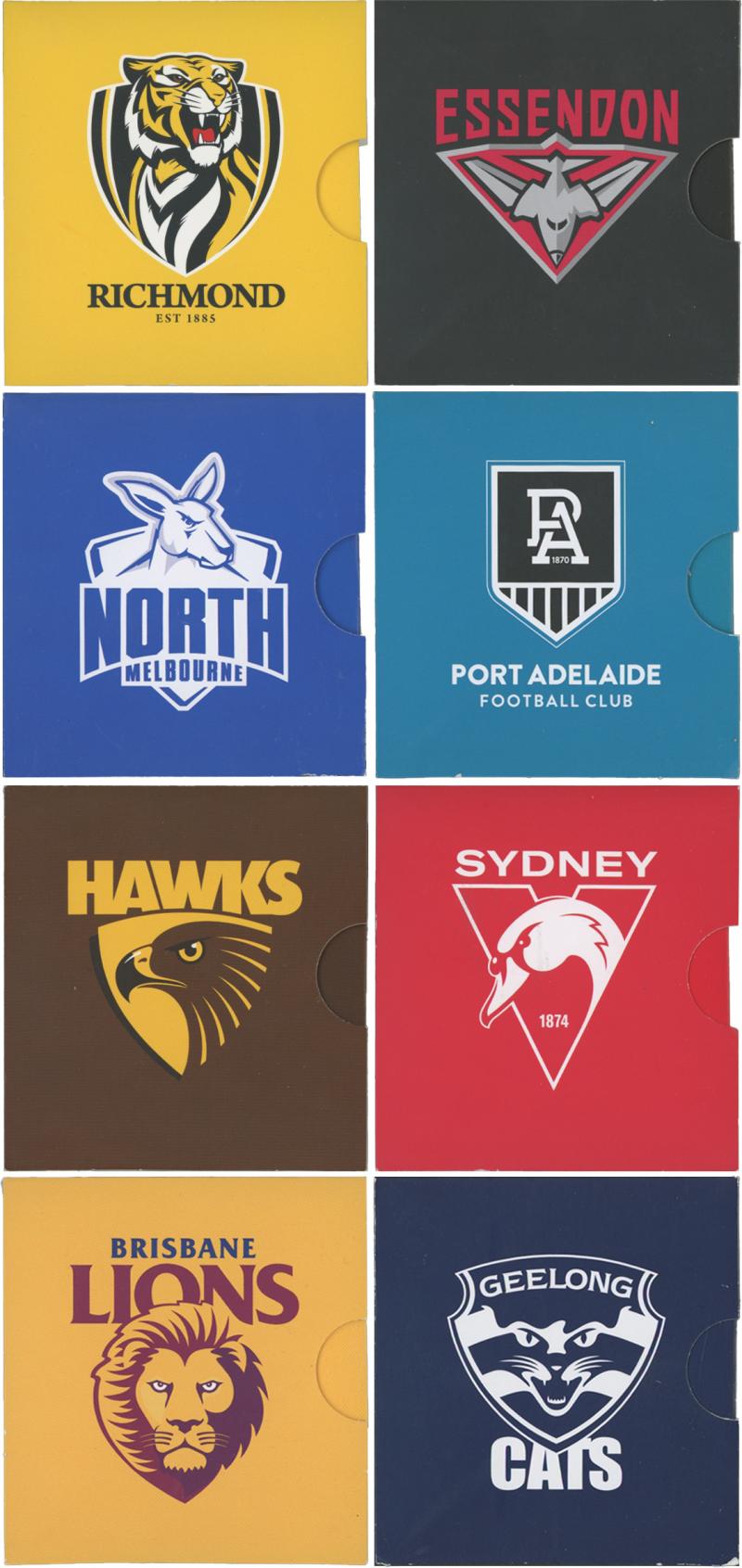 Adelaide, Essendon, Sydney, Richmond, North Melbourne, Melbourne, Western Bulldogs, etc. Uncirculated.