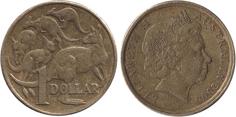2000 $1 Mob of Roos muled with 10c obverse with at least 270 degrees of doubled rim, gF/aVF. (Image1) (Image2)