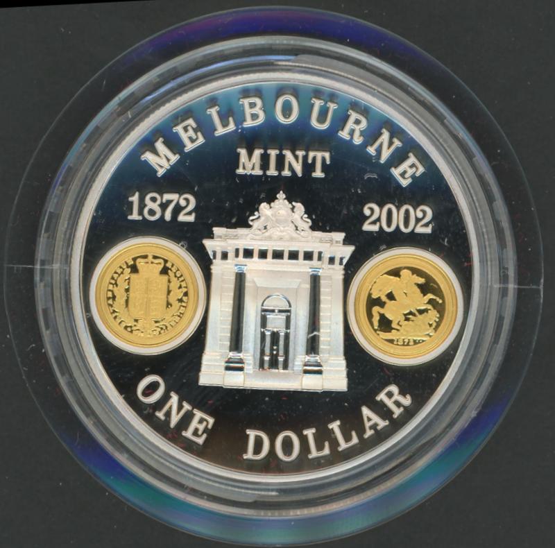 2002 Melbourne Mint (with 0.25g gold), 2004 $1 '1964 Penny', $1 (11.66g 0.999) 1999 Last Anzacs, and 2004 Eureka Stockade, all cased with outers.