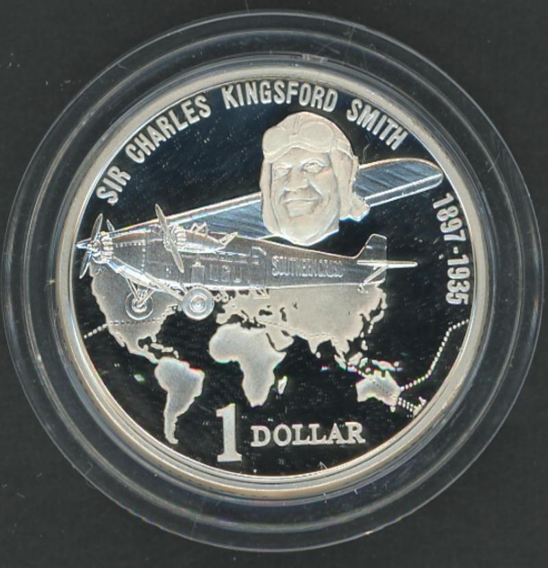 Silver group comprising $1 (11.49g, 0.925) 1993 Landcare, 1996 Parkes, (11.66g, 0.999) 1997 Kingsford Smith, 2002 Outback x2 (one