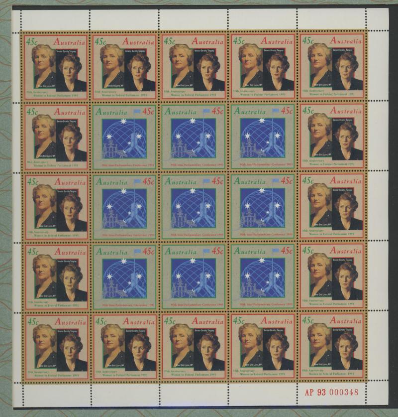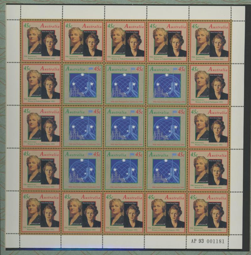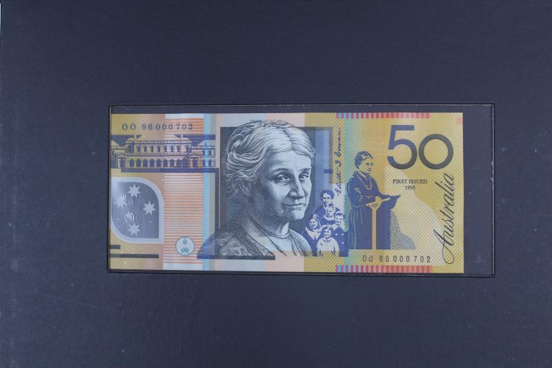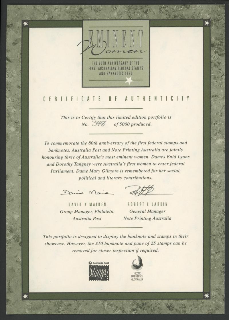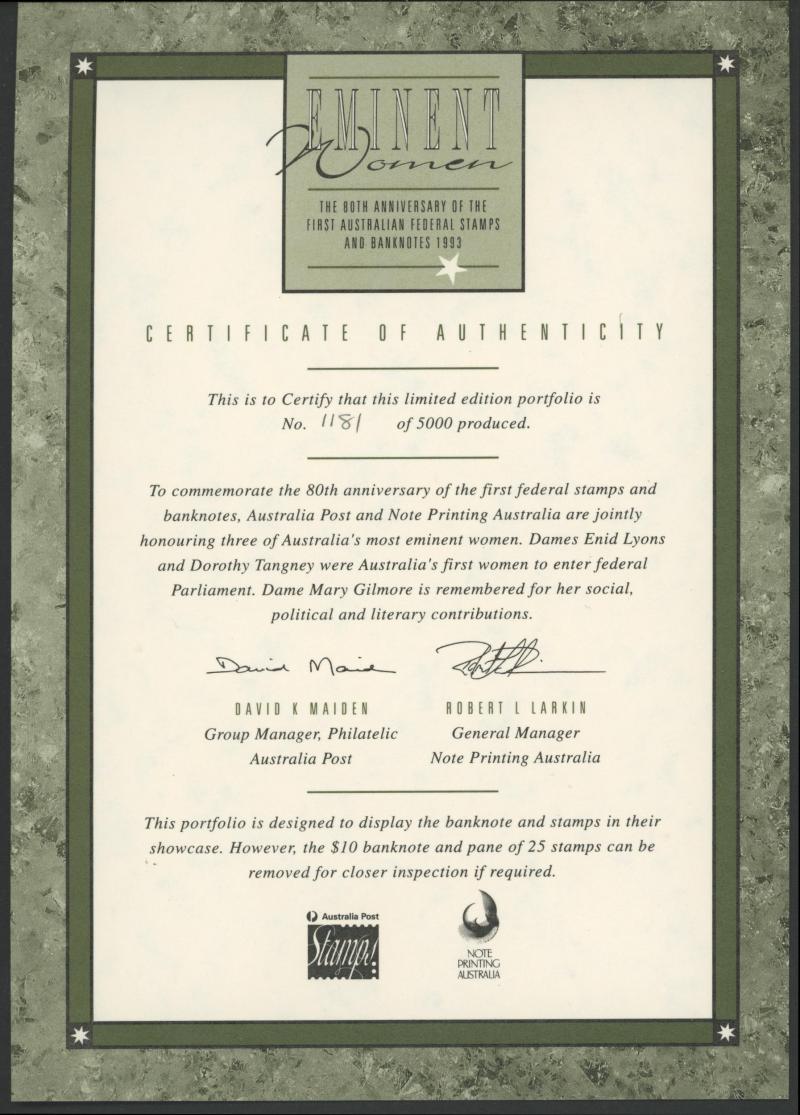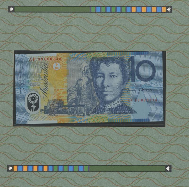 Group comprising 1993 $10 Eminent Women Green serial #181, and Red serial #348; 1994 $20 Lawrence Hargave #121; and 1995 $50 Howard