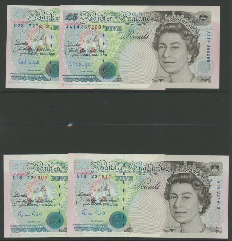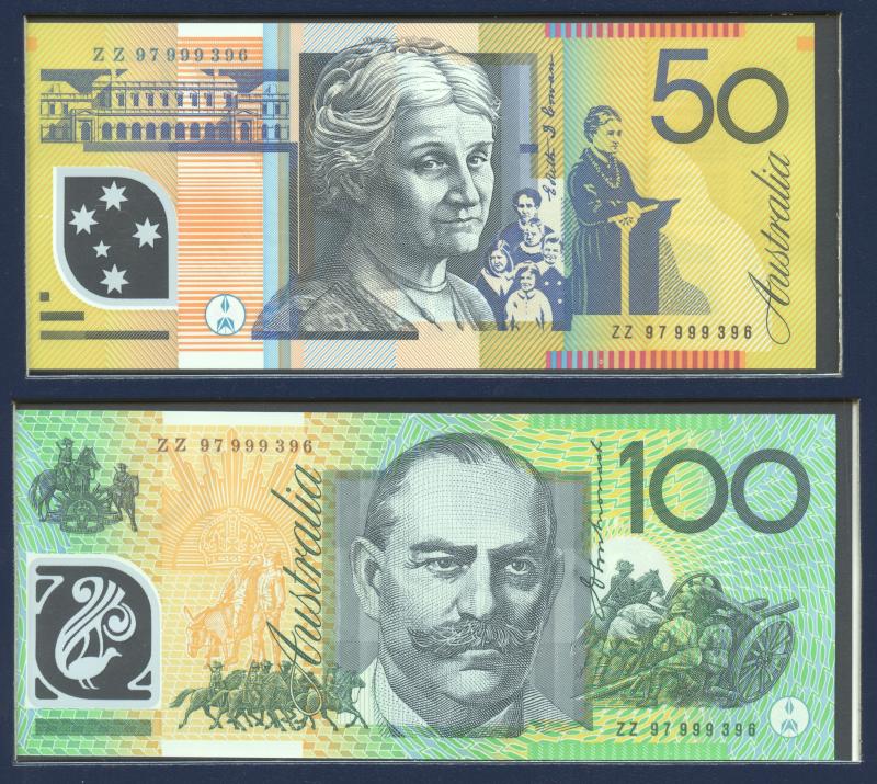 1997 'Australian Note And Coin Collection' R#B04, comprising Macfarlane/Evans $5 $10 $20 $50 & $100 all with matching serials 'ZZ
