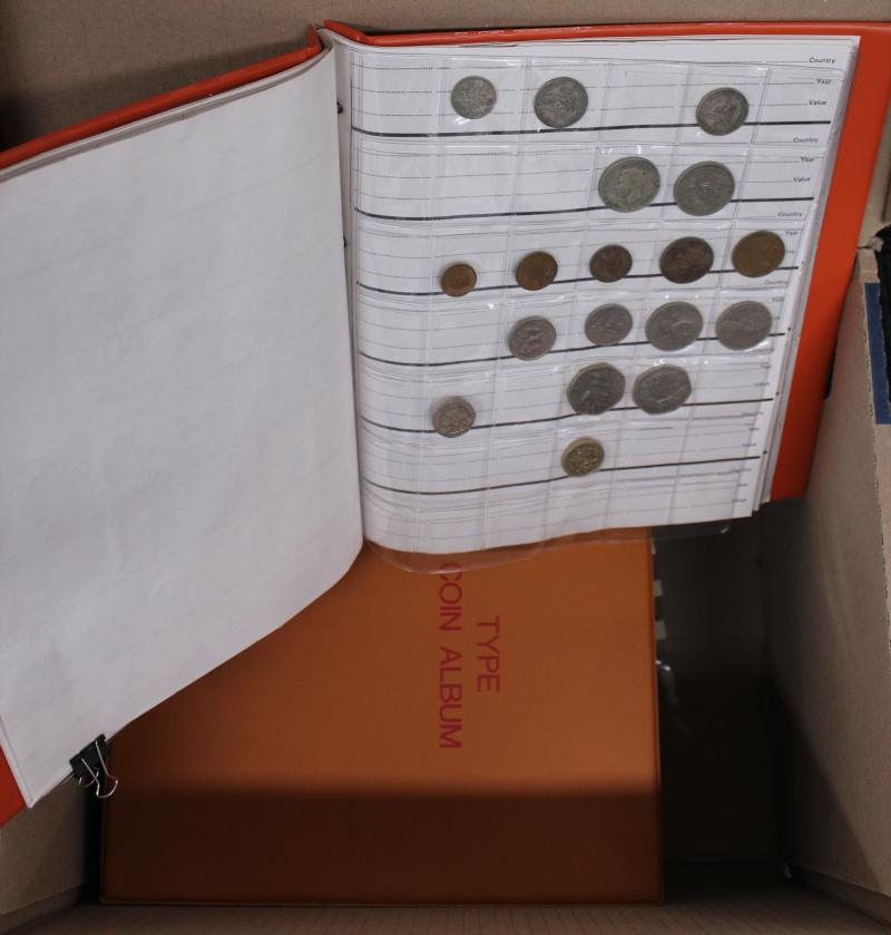 Four cartons containing World coin collections in albums including multiple Australia Pre-Decimal copper dates, and Decimals
