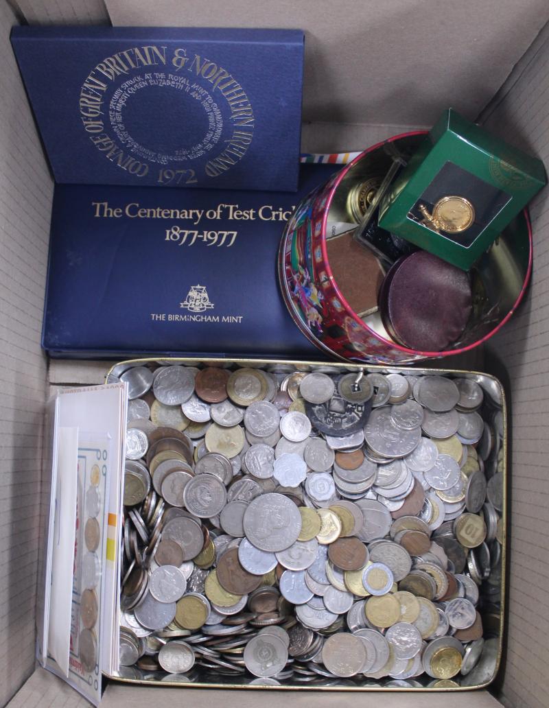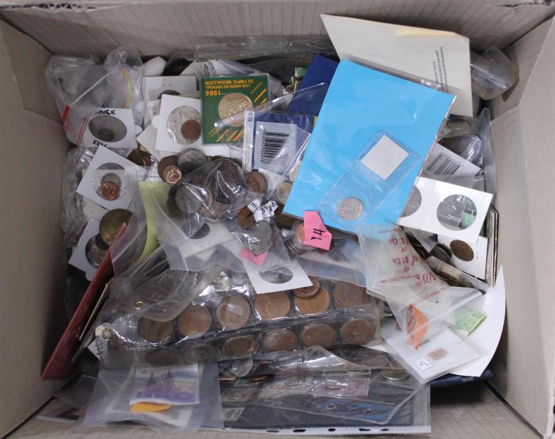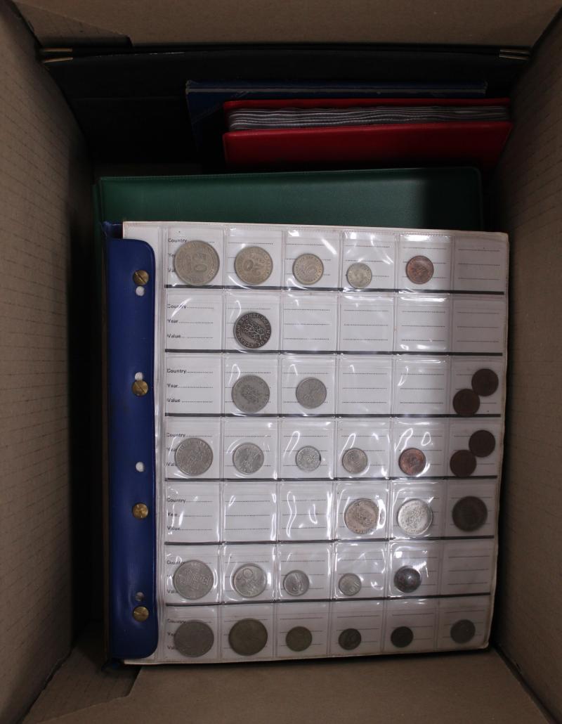 World mystery lot in three cartons containing coins including Australia Pre-Decimal copper, noted ½d date run collection complete