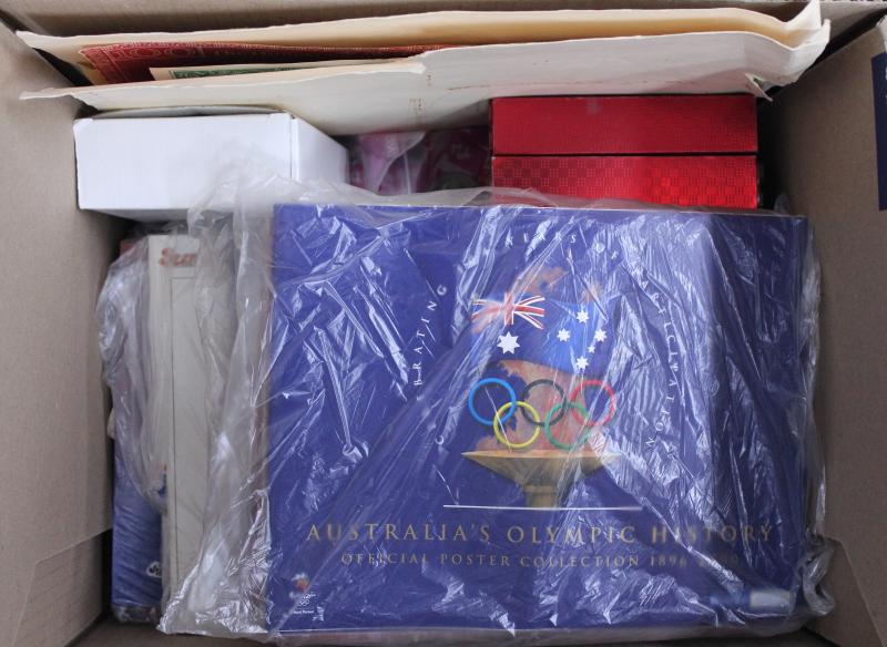 advertising Funny Money; Herald Sun medallion collections; some postage stamps; badges; condition variable. Weighs 38kg.