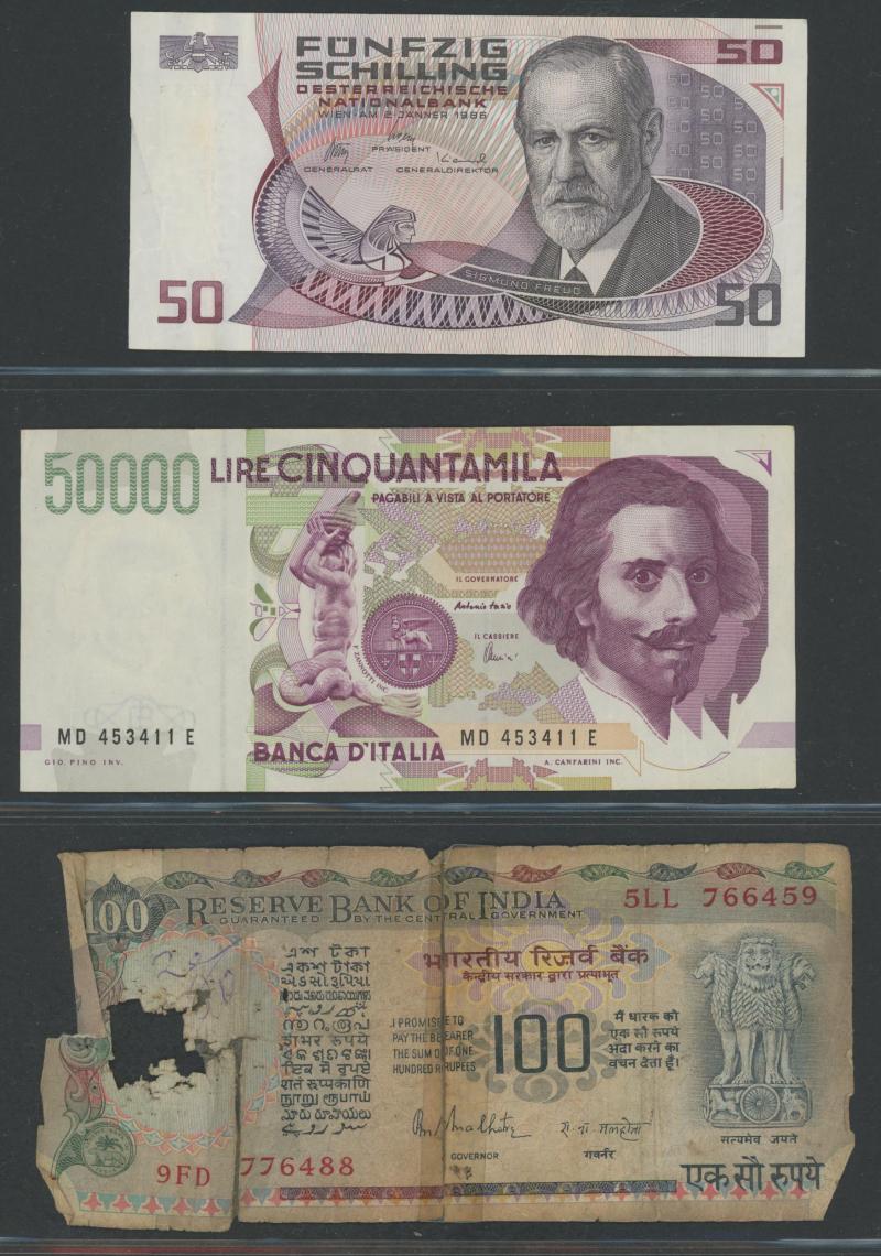5c (2c+5c), 1949 KGVI 50c, Sri Lanka 1987 1000r; Hong Kong (3) with 1999 $1000; Italy (24) with duplicates; Malaya WWII KGVI fractionals 1c 5c & 10c (aUnc/Unc); condition variable.