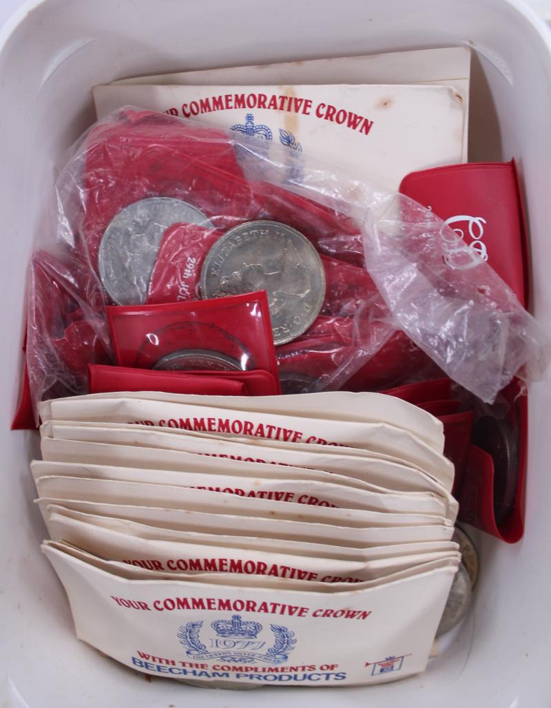 World coins in tin (6kg); plus Great Britain Crowns with QV 1890, plus QEII 1953-1981 (1.8kg) in tub with many 1977 Jubilee in