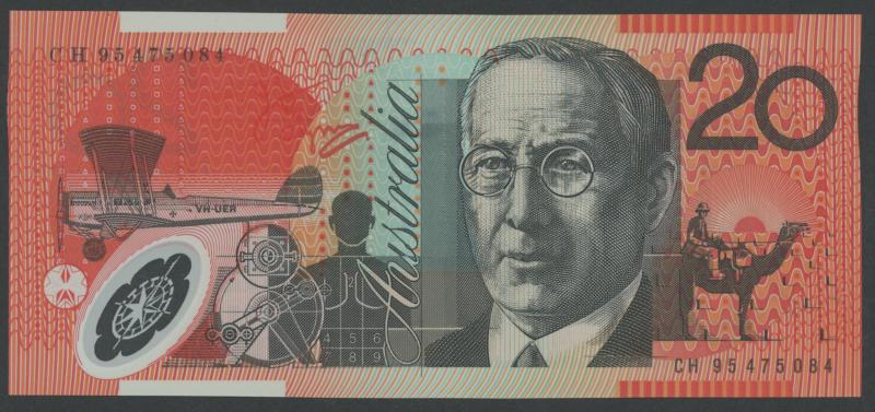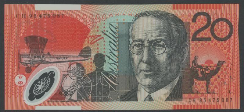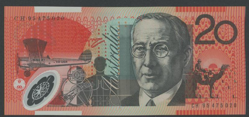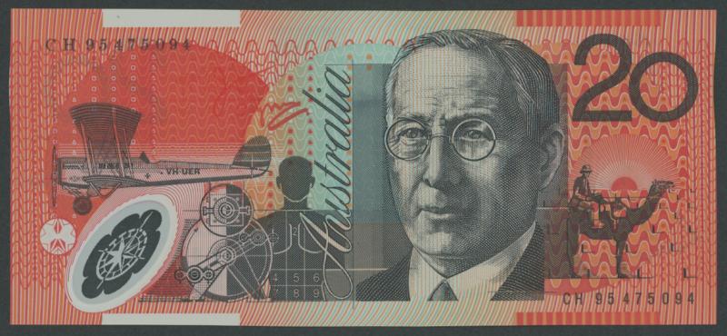 1995 $20 Fraser/Evans R416b serial 'CH95 475094', Uncirculated. Cat $285. (Image1) (Image2)