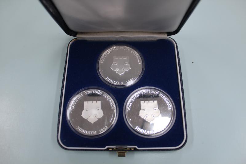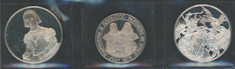 spots; Maria Medici (31.3g); Antonius (31.3g); 1975 Apollo Russia/USA in space (22g); and Stokes John Flynn (38.15g) gold plated, carbon spots; total asw 0.186kg, four with no packaging.