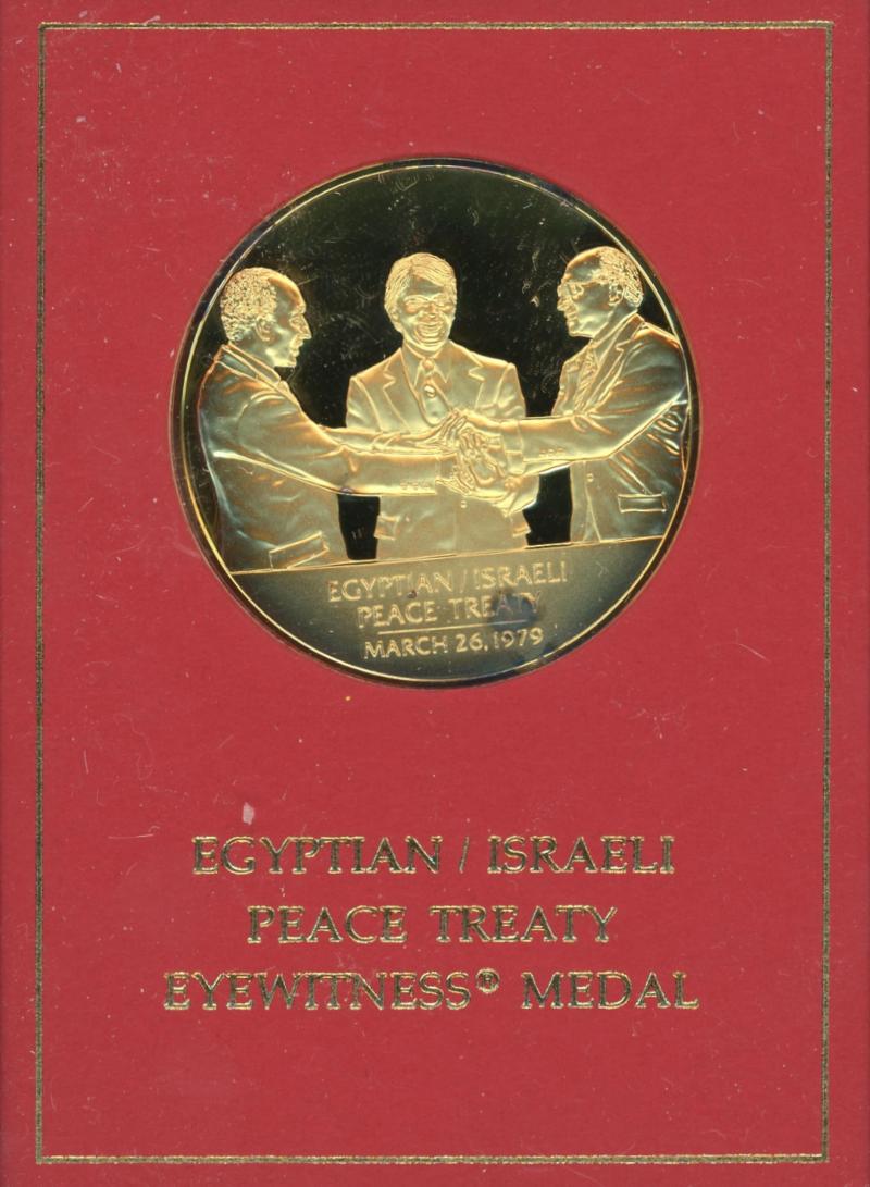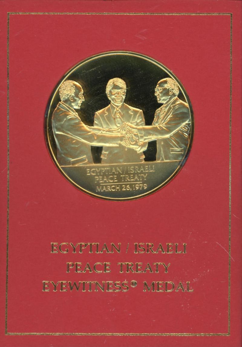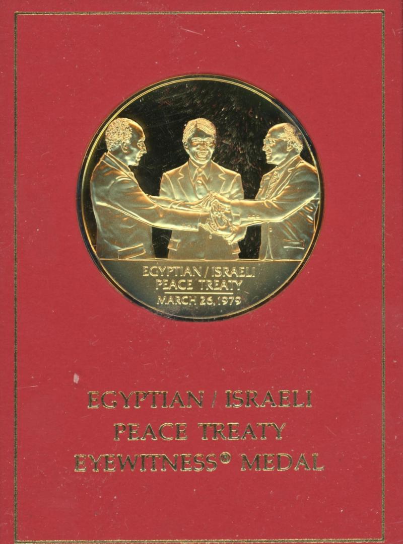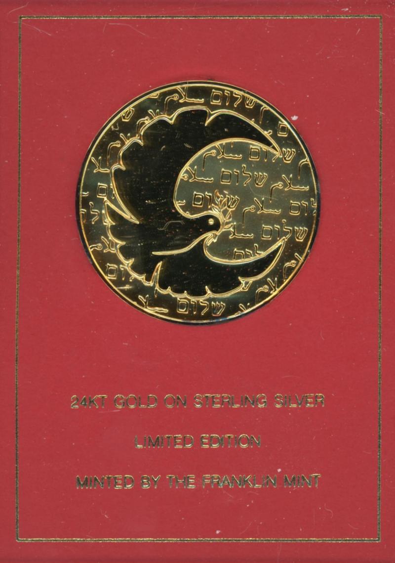 Silver medallions by Franklin Mint comprising sterling (0.925) 1979 Egypt/Israel Peace Treaty gold plated (19.84g) x4, carbon