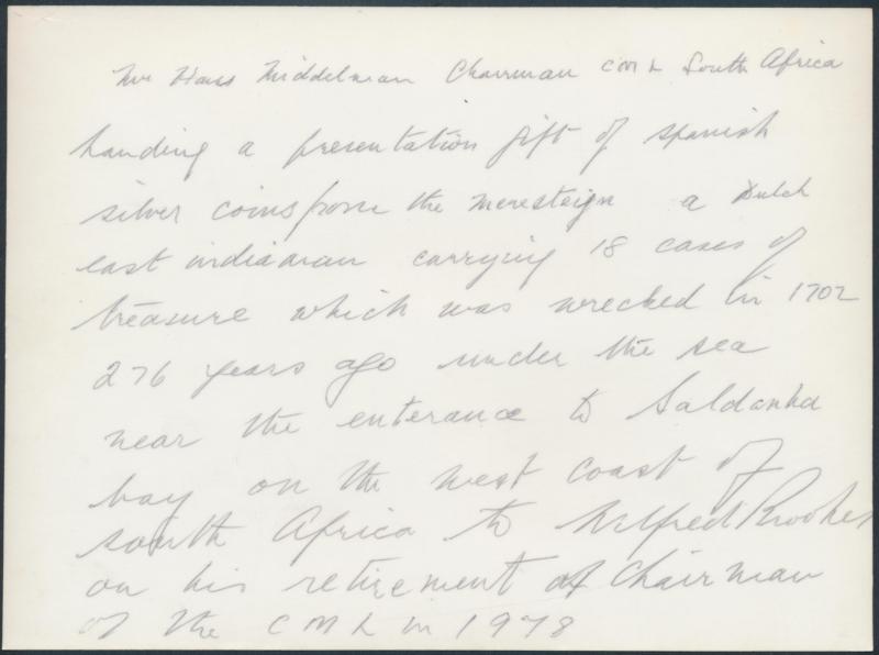 Fine/gFine. The Dutch East Indiaman Meresteyn, carrying 18 cases of treasure, wrecked in 1702 near the entrance to Saldanha Bay, Cape of Good Hope. All in presentation box with annotated photograph (1978) of coins being gifted to recipient. Purchased