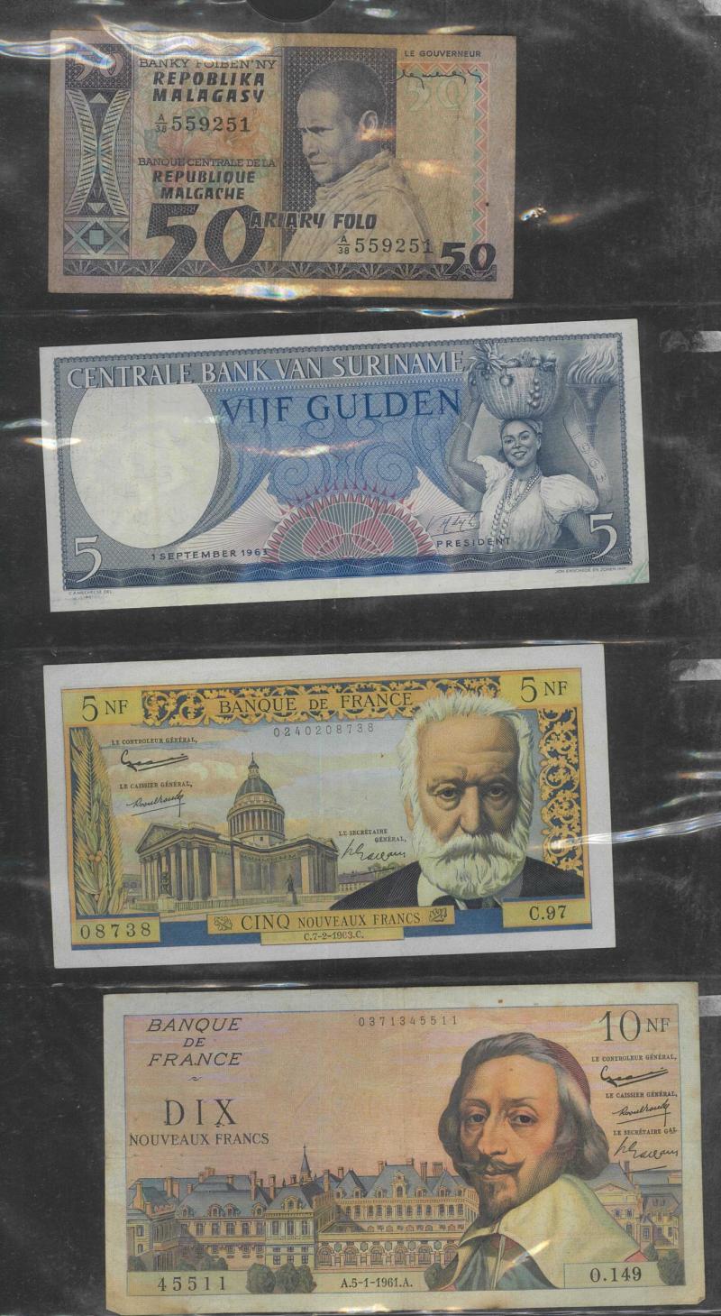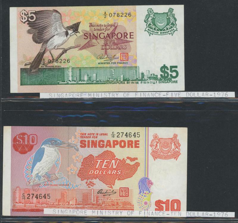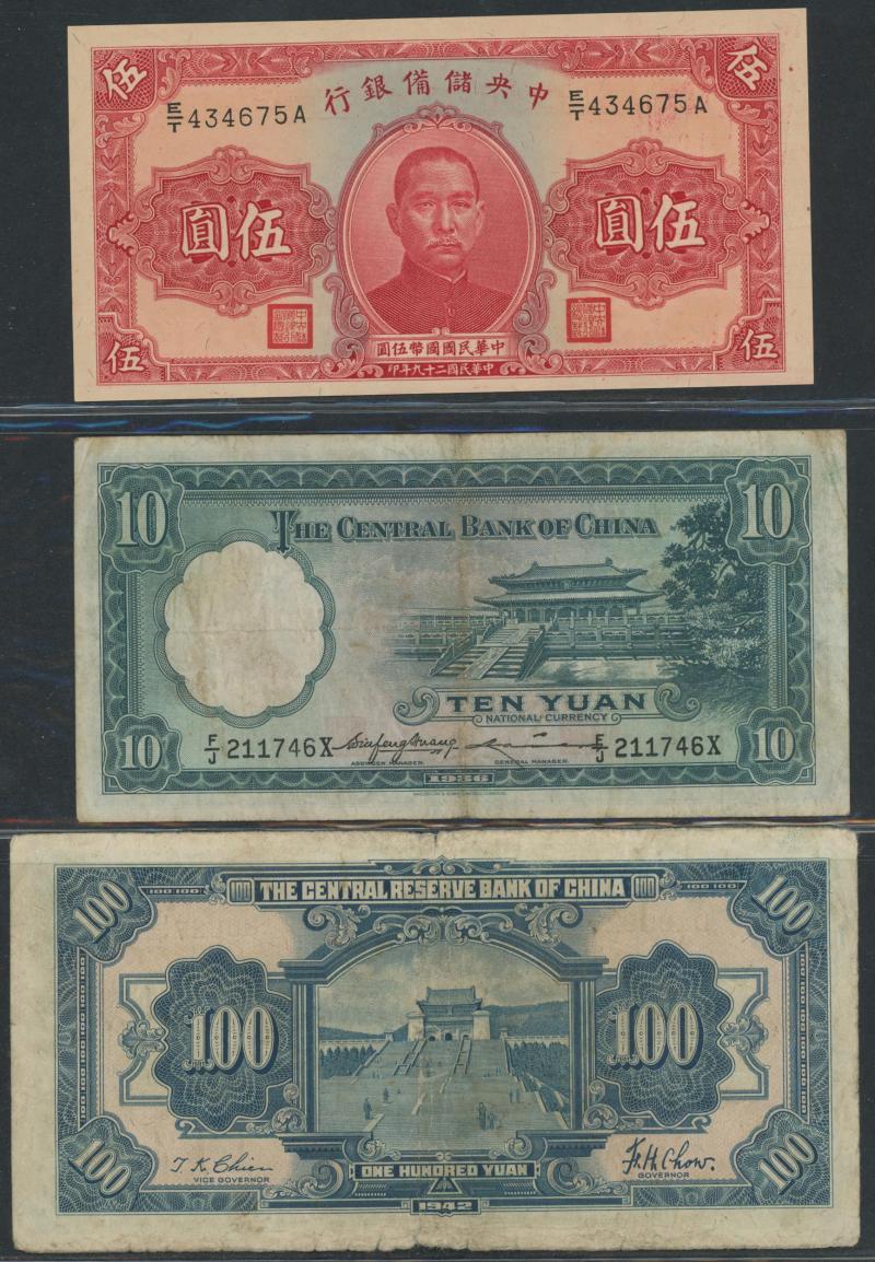 to $10; China 1938-42 various, Renminbi to 10y (15); Ceylon (10) with 1974 50r & 100r; Great Britain 10/- 1940 Emergency Peppiatt, 1963 Hollom, 1967 Fforde; Greece 1923-1978; Hungary 1940s to billion pengo; Japanese Invasion Money; Singapore 1972 $25