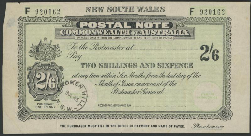 Remainders in box with Australia 50c 1966 x2, a few Pre-Decimal and Decimal coins, Postal Notes 1945 NSW 2/6d, 1939 South Australia