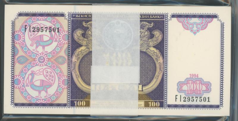 ringgit P27b (no band), Syria 2009 50 pounds P112, Turkey 2009 5 lira P222 x2, and Uzbekistan 1994 100 sum P79, Uncirculated.