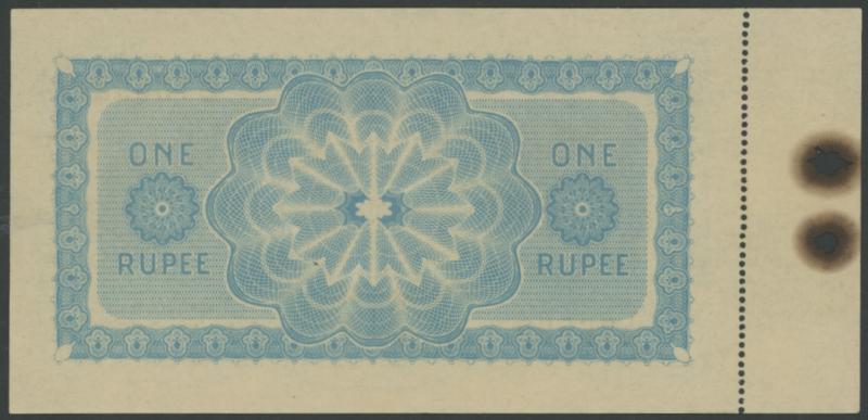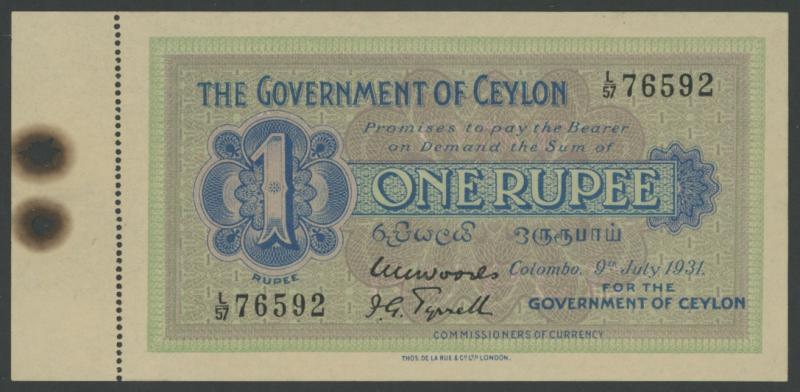 1931 (9th July) 1 rupee P16b serial 'L/57 76592' with counterfoil at left (two stained spindle holes), Uncirculated. (Image1) (Image2)