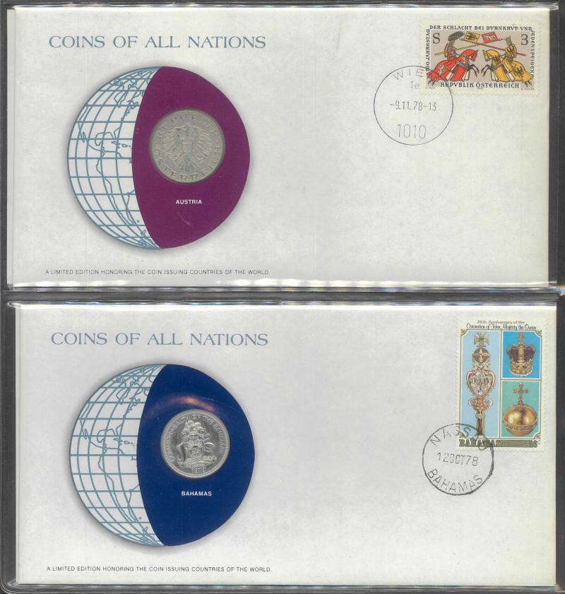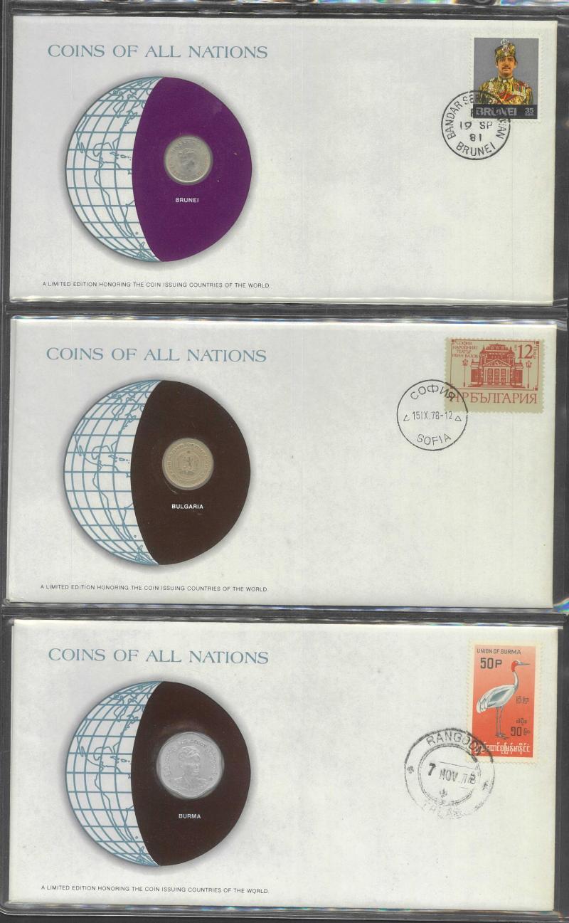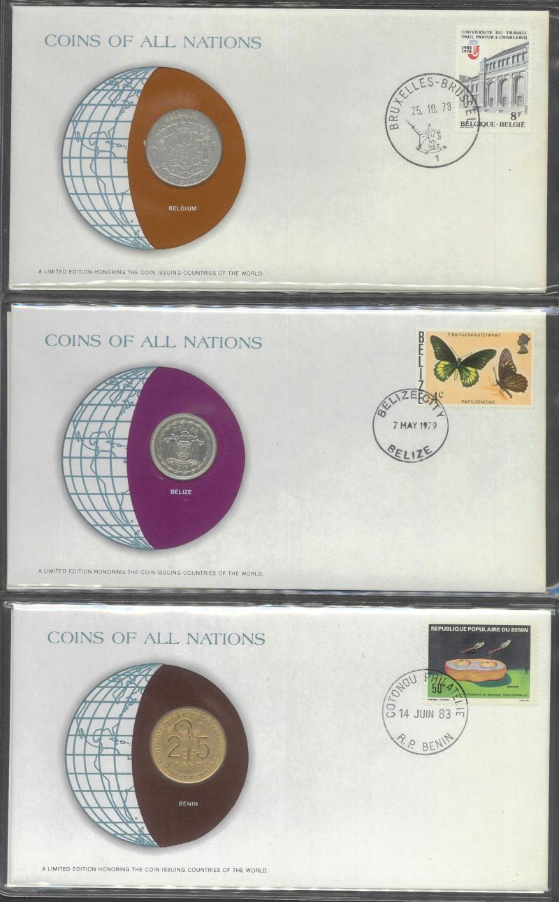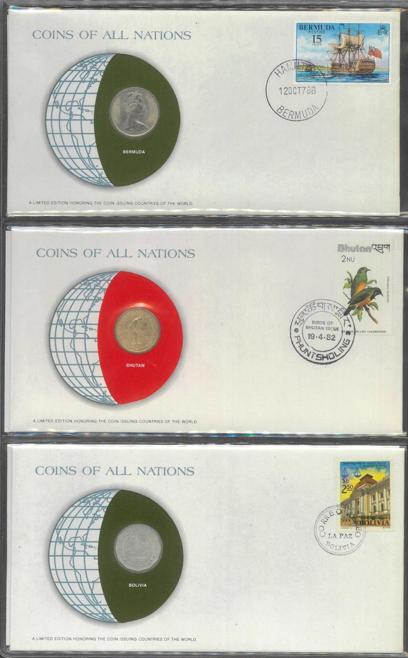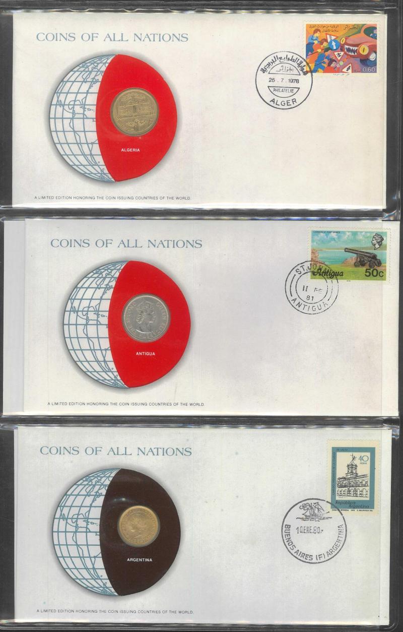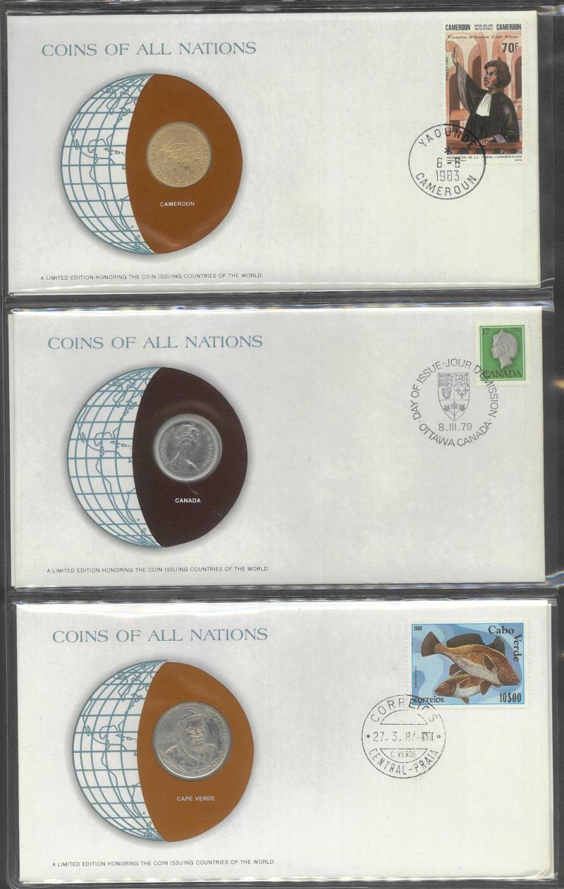Coins of all Nations 1973-1983 Franklin Mint PNC collections in five albums (between 48 to 75 covers per album); plus Great