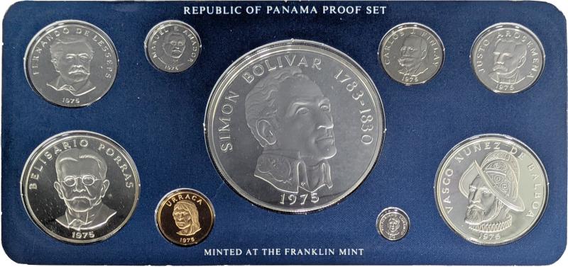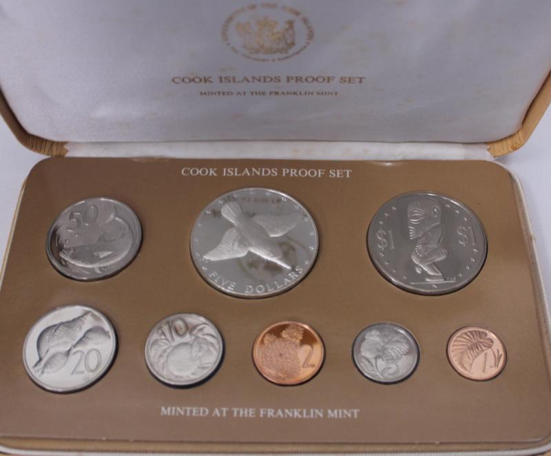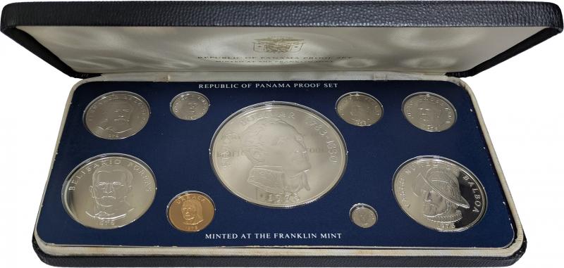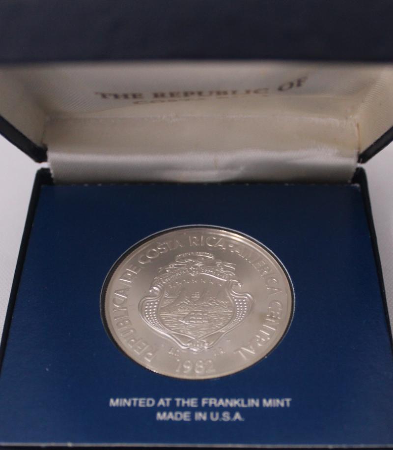 Franklin Mint Proof product comprising Cook Islands 1976 set of eight; Costa Rica 1982 silver 250 colonies; Panama 1975 set of nine