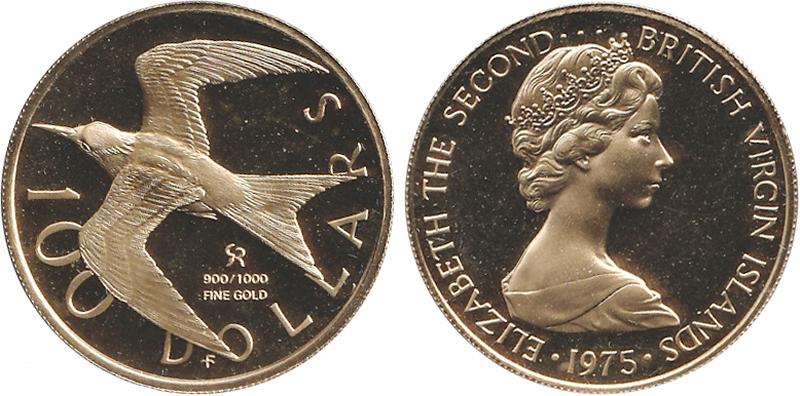BRITISH VIRGIN ISLANDS: 1975 $100 gold (7.10g 0.900) Proof KM 7, rev. Royal Tern, cased with certificate. (Image1) (Image2)
