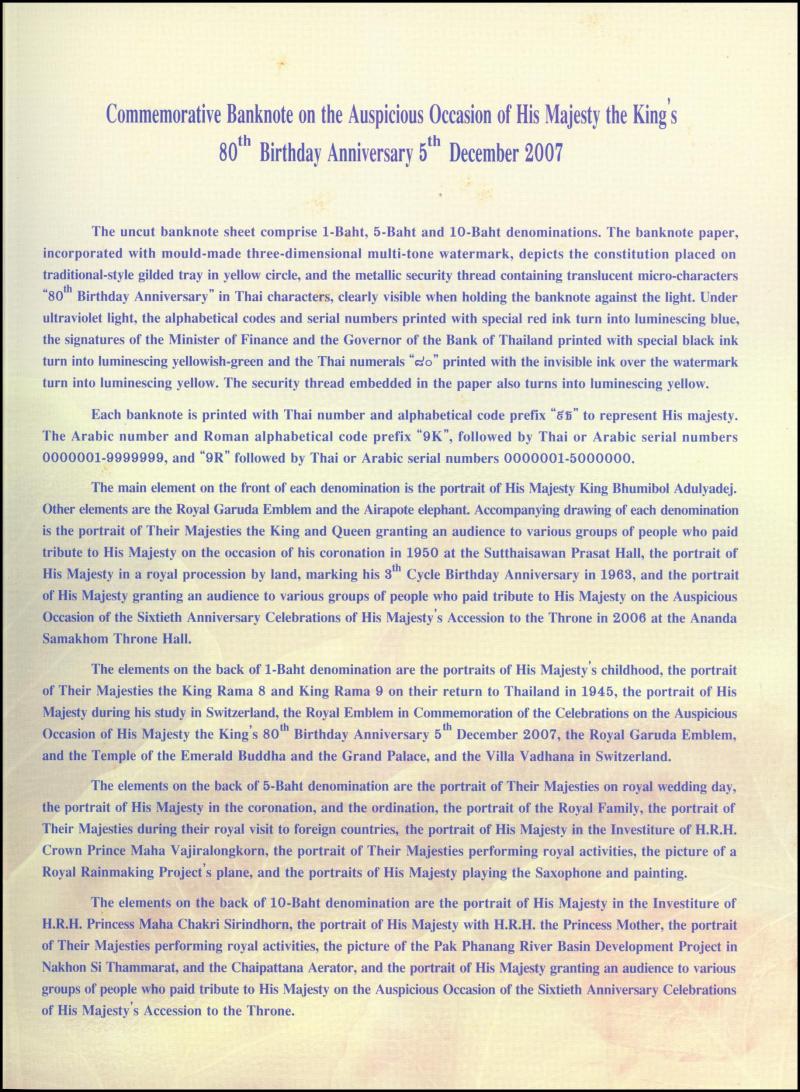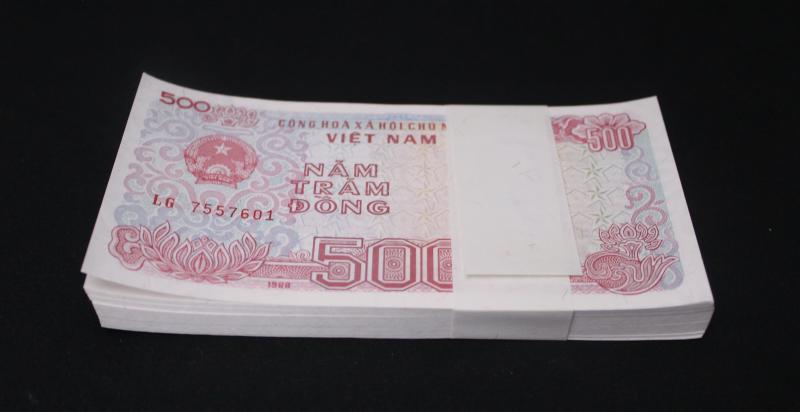 with 2007 King's 80th Birthday uncut 1 baht, 5 baht & 10 baht; Vietnam 1988 500 dong bundles of 100 x9 (Unc); condition variable.