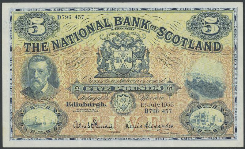 The National Bank of Scotland 1955 (1st July) £5 Dandie/Alexander, Callaway & Murphy NA58, Pick 259d, serial 'D796-457', light