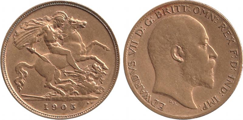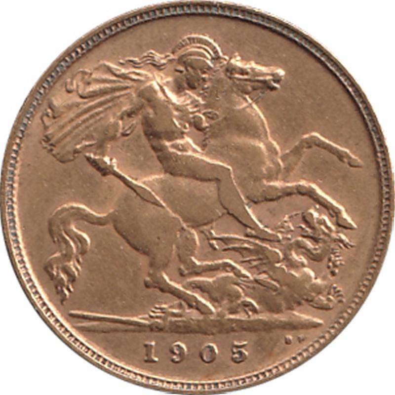 HALF-SOVEREIGN: 1905 KEVII St George reverse, Marsh 508, Spink 3974B, Fine. (Image1) (Image2)
