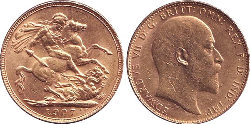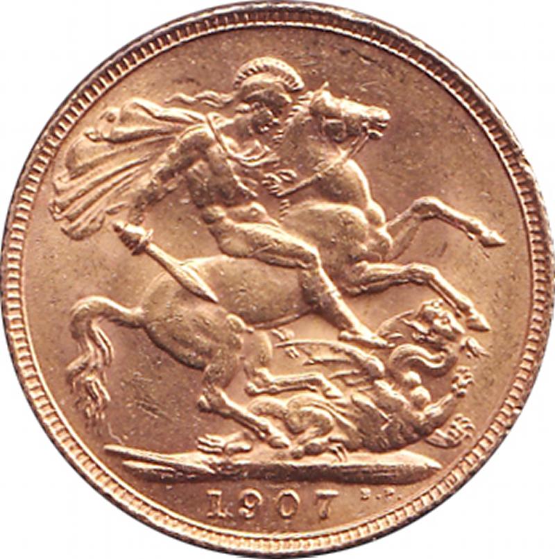 SOVEREIGN: 1907 KEVII St George reverse, Marsh 179, Spink 3969, EF. (Image1) (Image2)