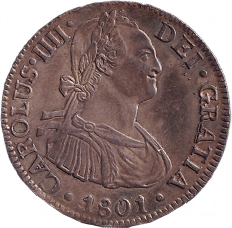 TWO REALES: 1801 Charles IV 2r KM 91 mintmark 'Mo F.M.' Mexico City (scarce moneyer), aVF. (Image1) (Image2)