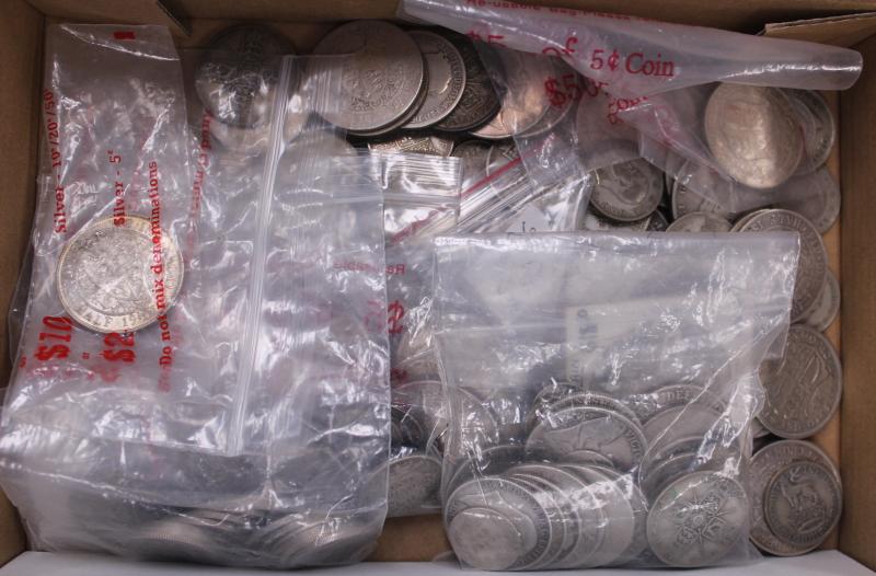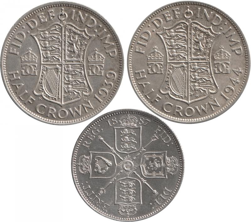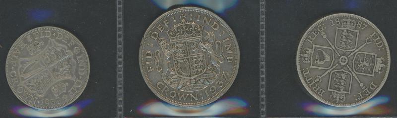 QV-KGV silver 3d, 6d, 1/-, 2/-, double-florin, 2/6d, and Crowns; also KGVI including 1937 Crown with some cupro-nickel issues;