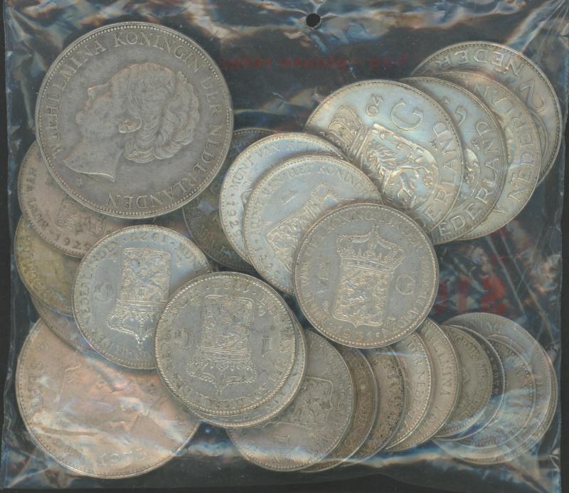 Silver 1920s-1970s group to 10 guilders including 1g (17), 2½g 1931 & 1932, 10g 1973, coins weigh 320g, condition variable.