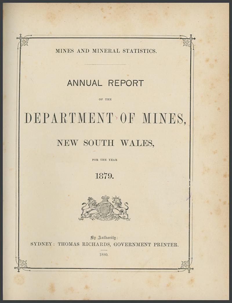AUSTRALIA - NEW SOUTH WALES: 'Annual Report of the Department of Mines, New South Wales, for the year 1879', bound in ¼-leather;