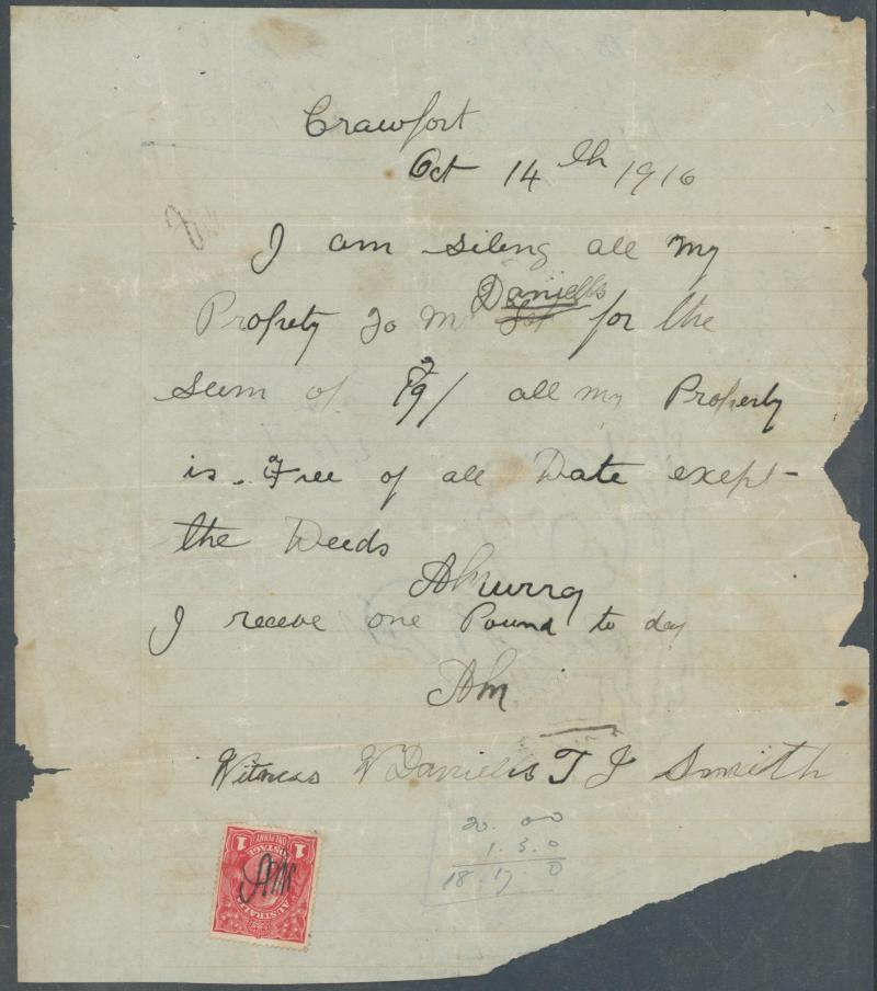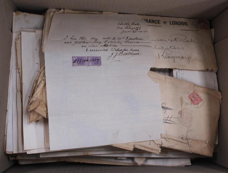 conveyances, bills of sale, leases, indentures, receipt books, goods requests, banking, municipal, etc, very mixed condition so personal inspection is recommended. Weighs 46kg.