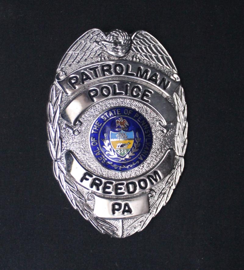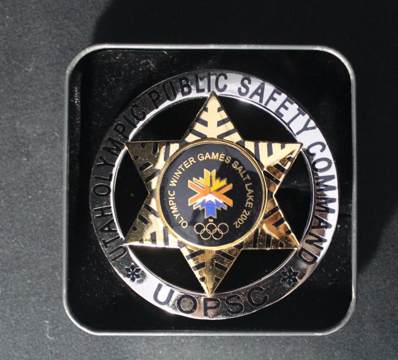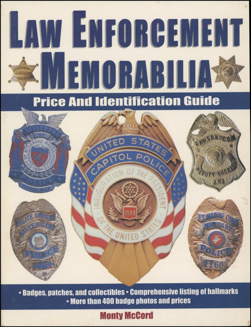 Police collection of mostly Australian British & American metal badges plus 'Law Enforcement Memorabilia Price and Identification
