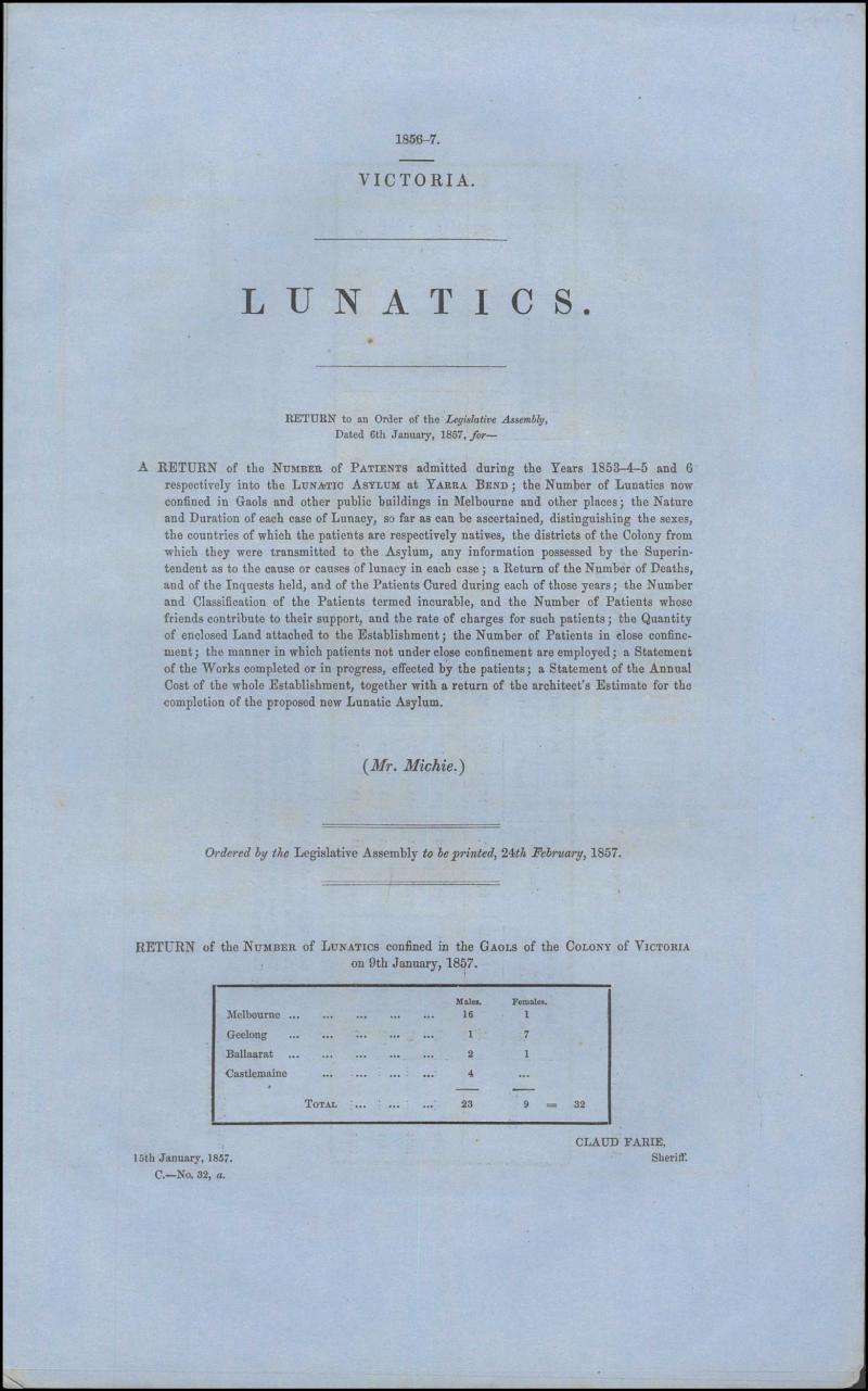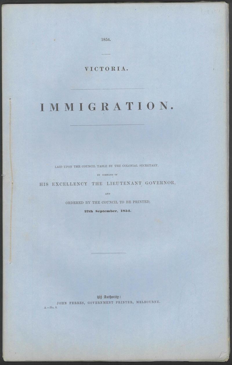 AUSTRALIA - VICTORIA: Carton of records including 'Immigration' (1854), 'Railways' (1854 and 1856-7), 'Lunatics' (1856-57),