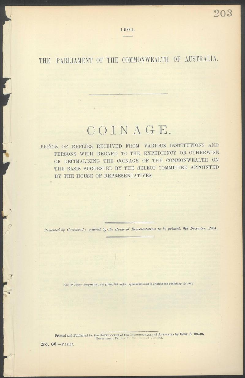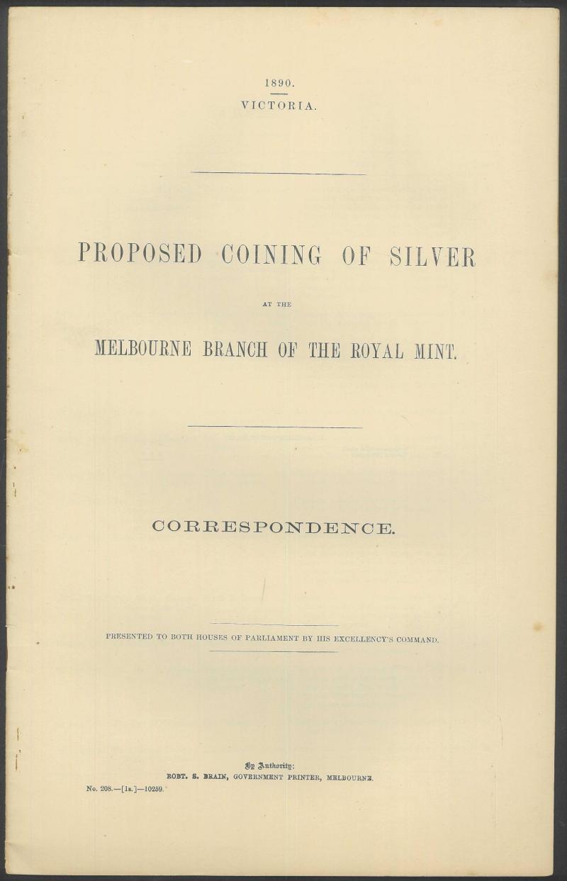 'Electric Telegraph' (1865), 'Melbourne Branch of the Royal Mint proposed Coining of Silver' (1890), 'Coinage' (1904), Australian History (1969), condition variable. Weighs 2kg. (Image1) (Image2)