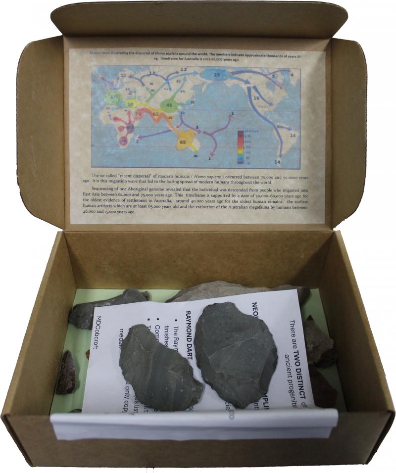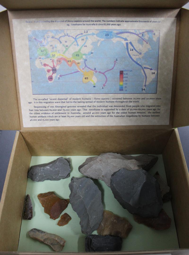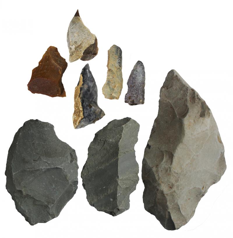 Stone tools collection of early prehistoric stone tools (14) plus booklet 'The Hand of Man - Stone Tools as a Witness of the